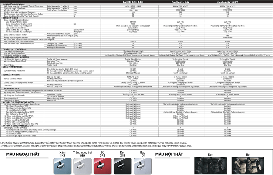 Xe tiếp tục nhập khẩu Thái Lan với 3 tùy chọn phiên bản gồm: G, V và HEV. Với mức khởi điểm từ 719 triệu đồng, giá xe Toyota Corolla Altis 2022 trở nên hết sức cạnh tranh trong phân khúc sedan C tại Việt Nam hiện nay.